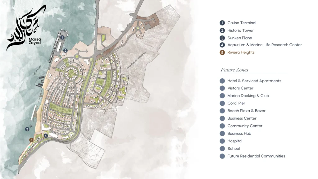 Marsa Zayed is a mega mixed-use waterfront project that will redefine Aqaba’s skyline and lifestyle offerings. The master plan stretches along a 3.2 km development strip with 2 km of beachfront directly on the Gulf of Aqaba. It is the biggest real estate and tourism project in Jordan’s history and one of the most ambitious in the Middle East.